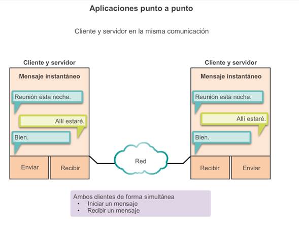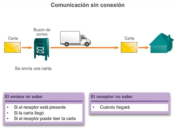 Por ejemplo, piense en dos personas que se comunican cara a cara, como se muestra en la figura 1. Antes de comunicarse, deben acordar cómo hacerlo. Si en la comunicación se utiliza la voz, primero deben acordar el idioma. A continuación, cuando tienen un mensaje que compartir, deben poder dar formato a ese mensaje de una manera que sea comprensible. Por ejemplo, si alguien utiliza el idioma español, pero la estructura de las oraciones es deficiente, el mensaje se puede malinterpretar fácilmente. Cada una de estas tareas describe protocolos implementados para lograr la comunicación. Esto es válido para la comunicación por computadora, como se muestra en la figura 2.