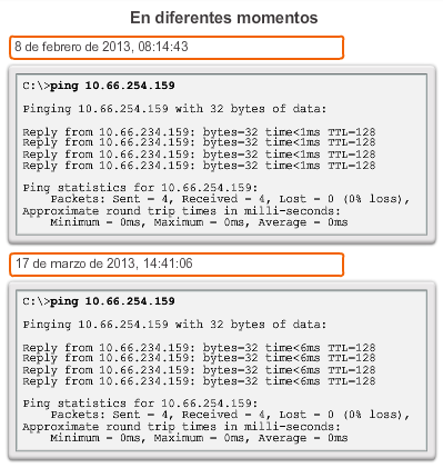 Si una persona hace una pregunta y no escucha una respuesta antes de un tiempo aceptable, supone que no habrá ninguna respuesta y reacciona en consecuencia, como se muestra en la figura 3. La persona puede repetir la pregunta o puede continuar la conversación. Los hosts de las redes también tienen reglas que especifican cuánto tiempo deben esperar una respuesta y qué deben hacer si se agota el tiempo de espera para la respuesta.