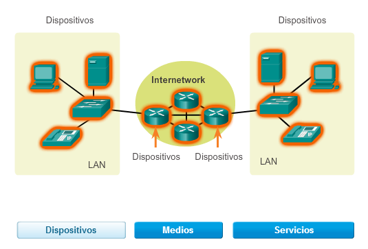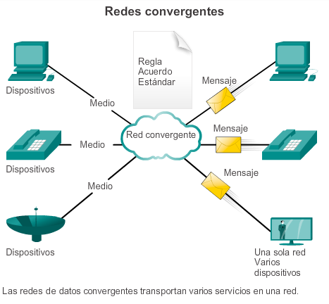 Una red puede ser tan compleja como los dispositivos conectados a través de Internet, o tan simple como dos PC conectadas directamente entre sí mediante un único cable, o puede tener cualquier grado de complejidad intermedia. Las redes pueden variar en lo que respecta al tamaño, la forma y la función. Sin embargo, realizar simplemente la conexión física entre los dispositivos finales no es suficiente para habilitar la comunicación. Para que se produzca la comunicación, los dispositivos deben saber “cómo” comunicarse.