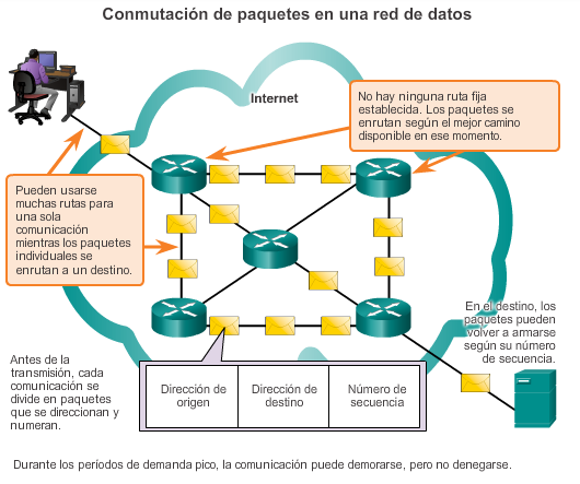 En teoría, una única comunicación, como un video musical o un mensaje de correo electrónico, podría enviarse a través de una red desde un origen hasta un destino como un stream de bits masivo y continuo. Si en realidad los mensajes se transmitieron de esta manera, significará que ningún otro dispositivo podrá enviar o recibir mensajes en la misma red mientras esta transferencia de datos está en progreso. Estos grandes streams de datos originarán retrasos importantes. Además, si falla un enlace en la infraestructura de la red interconectada durante la transmisión, el mensaje completo se perdería y tendría que retransmitirse completamente.