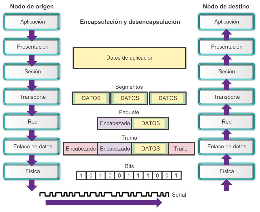 Mientras los datos de la aplicación bajan al stack del protocolo y se transmiten por los medios de la red, varios protocolos le agregan información en cada nivel. Esto comúnmente se conoce como proceso de encapsulación.