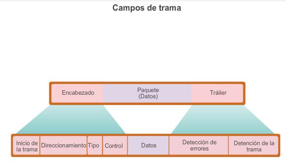 De manera similar, cuando se envía un mensaje largo de un host a otro a través de una red, es necesario dividirlo en partes más pequeñas, como se muestra en la figura 2. Las reglas que controlan el tamaño de las partes, o tramas que se comunican a través de la red, son muy estrictas. También pueden ser diferentes, de acuerdo con el canal utilizado. Las tramas que son demasiado largas o demasiado cortas no se entregan.