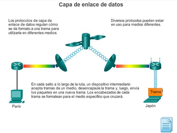 Capa 2 Capa Enlace de Datos: Los protocolos de capa de enlace de datos describen los métodos para intercambiar tramas de datos entre dispositivos en un medio común.