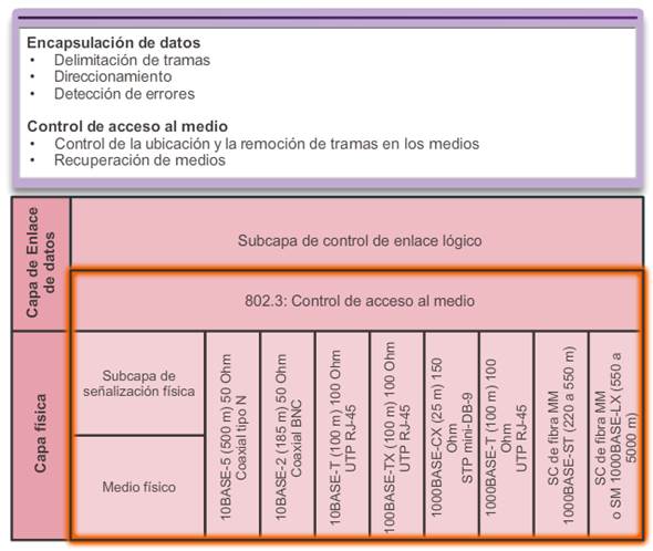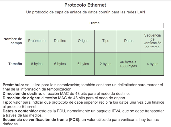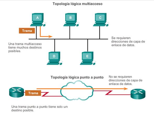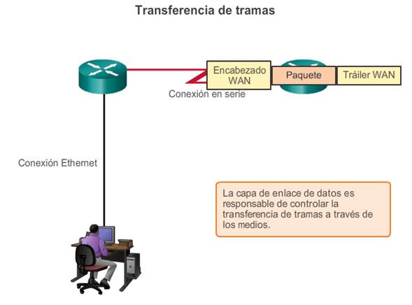 La dirección física de la capa de enlace de datos, o capa 2, tiene una función distinta. Su propósito es enviar la trama de enlace de datos desde una interfaz de red hasta otra interfaz de red en la misma red. Antes de que un paquete IP pueda enviarse a través de una red conectada por cable o inalámbrica, se debe encapsular en una trama de enlace de datos de modo que pueda transmitirse a través del medio físico, la red real. Las LAN Ethernet y las LAN inalámbricas constituyen dos ejemplos de redes que tienen distintos medios físicos, cada uno con su propio tipo de protocolo de enlace de datos.