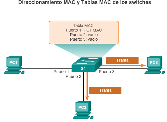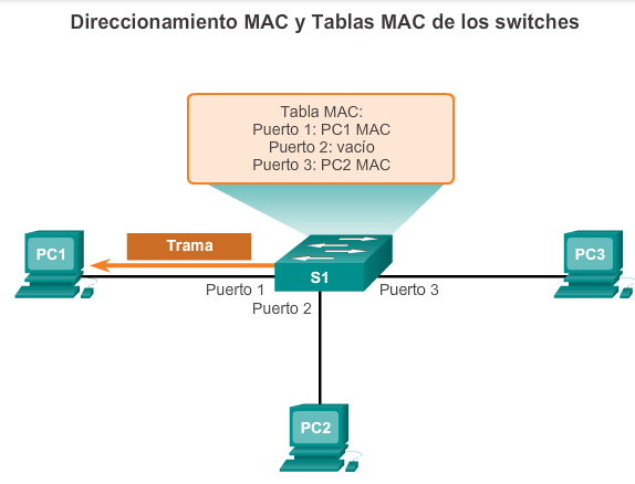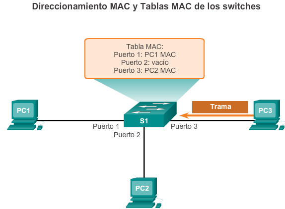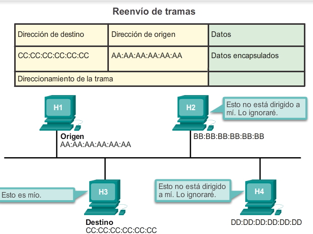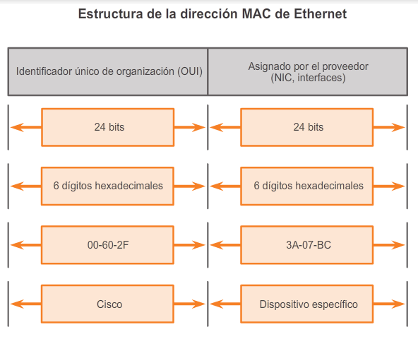 Cuando el emisor y el receptor del paquete IP están en la misma red, la trama de enlace de datos se envía directamente al dispositivo receptor. En una red Ethernet, las direcciones de enlace de datos se conocen como direcciones MAC de Ethernet. Las direcciones MAC son direcciones de 48 bits que están integradas físicamente en la NIC Ethernet. Las direcciones MAC también se conocen como direcciones físicas (BIA).
