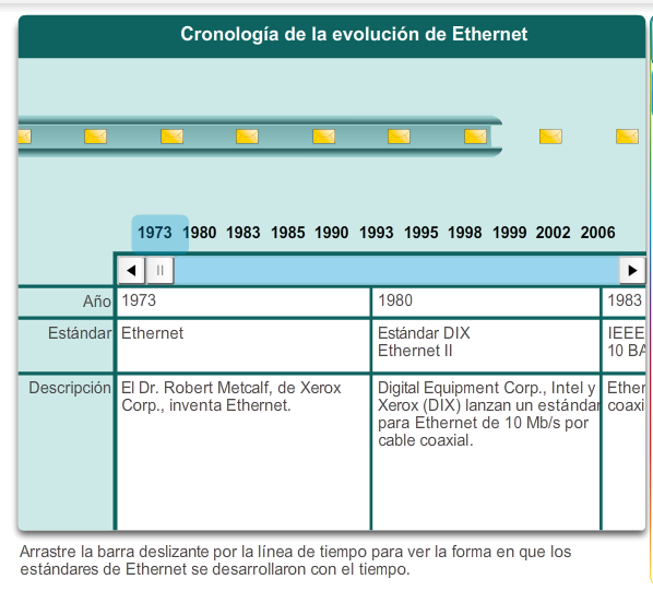 Haga clic en la línea de tiempo de la ilustración para ver los detalles sobre el desarrollo de otros protocolos y aplicaciones de red.