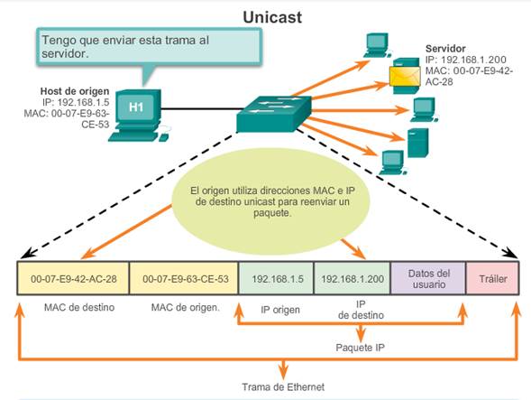 Las opciones de entrega de uno a uno se denominan “unicast”, lo que significa que el mensaje tiene un único destino.