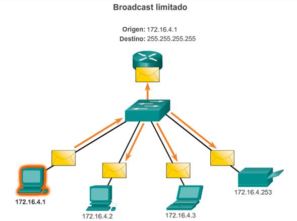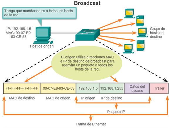 Si es necesario que todos los hosts de la red reciban el mensaje a la vez, se utiliza el método de broadcast. El broadcasting representa una opción de entrega de mensaje de uno a todos. Además, los hosts tienen requisitos para los mensajes con confirmación que son diferentes de los requisitos para los mensajes sin confirmación.