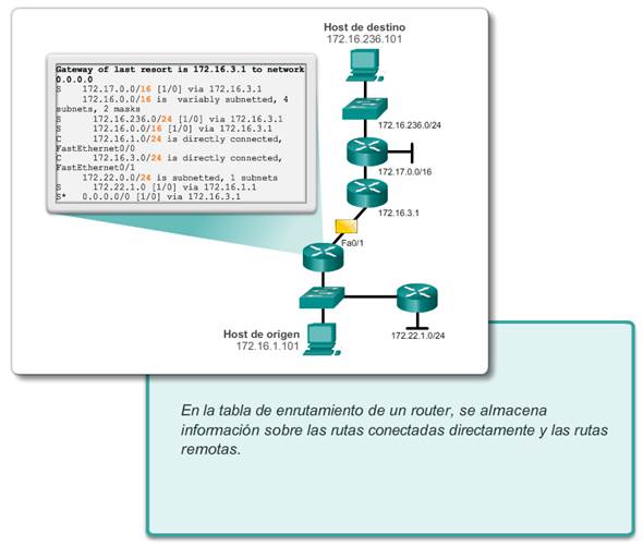 Cuando un host necesita enviar un mensaje a una red remota, debe utilizar el router, también conocido como “gateway predeterminado”. El gateway predeterminado es la dirección IP de una interfaz de un router en la misma red que el host emisor.