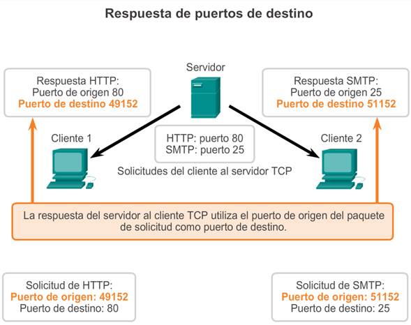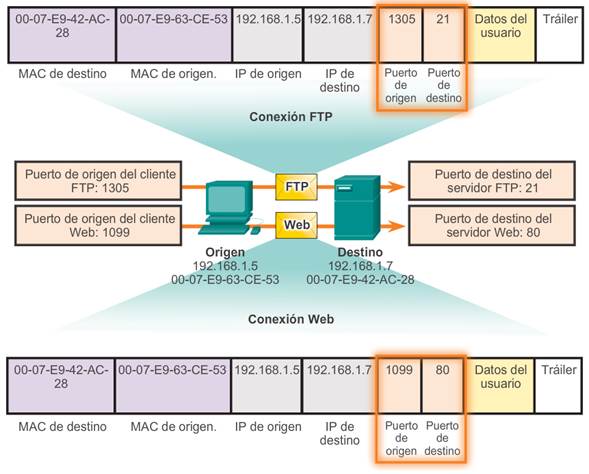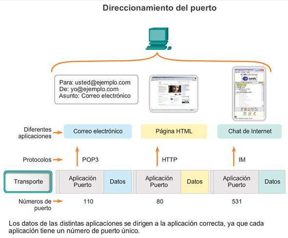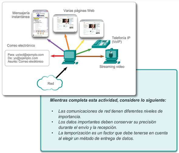 En las comunicaciones de red, cada segmento del mensaje debe seguir un proceso similar para asegurar que llegue al destino correcto y que pueda volverse a armar en el contenido del mensaje original, como se muestra en la figura 2.