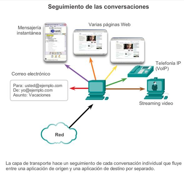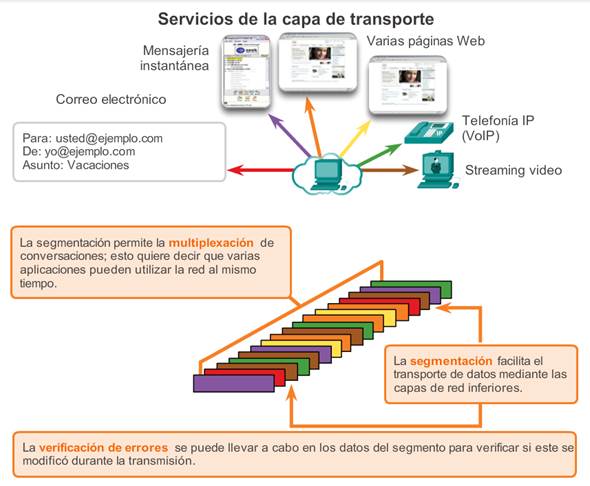 Capa 4 Capa Transporte: La capa de transporte define los servicios para segmentar, transferir y rearmar los datos para las comunicaciones individuales entre dispositivos finales.