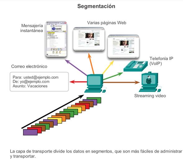 Un método mejor es dividir los datos en partes más pequeñas y manejables para enviarlas por la red. La división del stream de datos en partes más pequeñas se denomina segmentación. La segmentación de mensajes tiene dos beneficios principales: