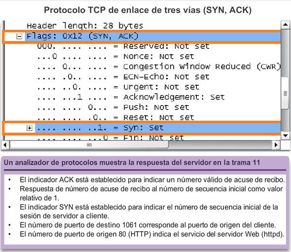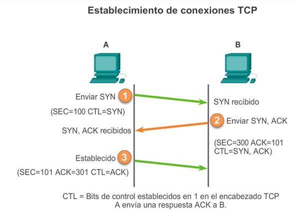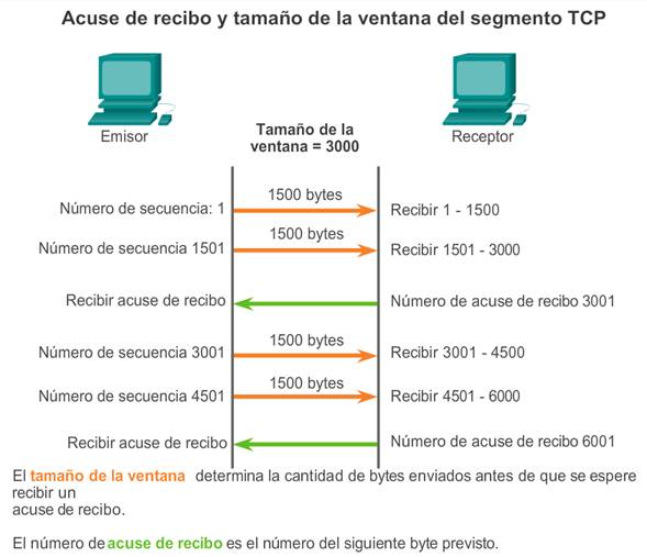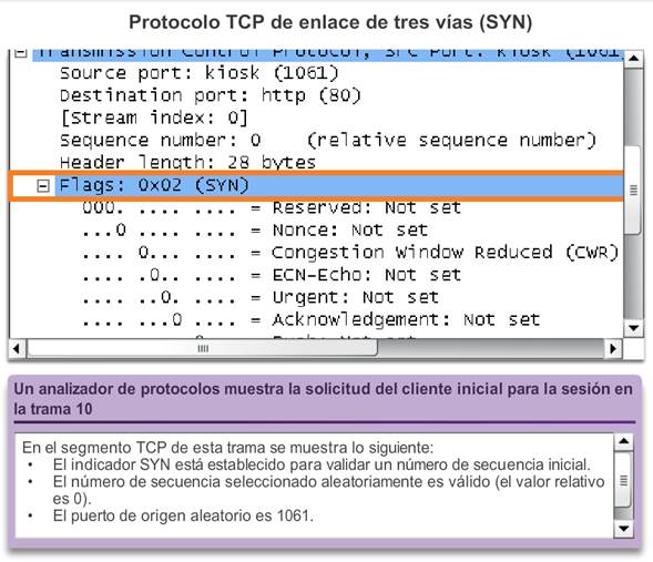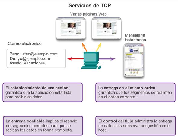 - Protocolo de transporte: el protocolo de control de transmisión (TCP) es el protocolo de transporte que administra las conversaciones individuales entre servidores Web y clientes Web. TCP divide los mensajes HTTP en partes más pequeñas, llamadas “segmentos”. Estos segmentos se envían entre los procesos del servidor y el cliente Web que se ejecutan en el host de destino. TCP también es responsable de controlar el tamaño y la velocidad a los que se intercambian los mensajes entre el servidor y el cliente.