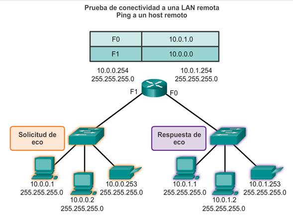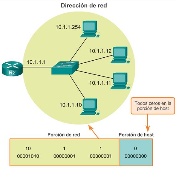 Las direcciones de la capa de red, o direcciones IP, indican la dirección de red y de host del origen y del destino. La porción de red de la dirección será la misma; solamente cambiará la porción de host o de dispositivo de la dirección.