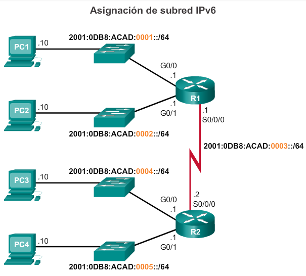 La dirección lógica de la capa de red, o capa 3, contiene la información necesaria para enviar el paquete IP desde el dispositivo de origen hasta el dispositivo de destino. Una dirección IP de capa 3 tiene dos partes: el prefijo de red y la parte de host. Los routers utilizan el prefijo de red para reenviar el paquete a la red adecuada. El último router de la ruta utiliza la parte de host para enviar el paquete al dispositivo de destino.